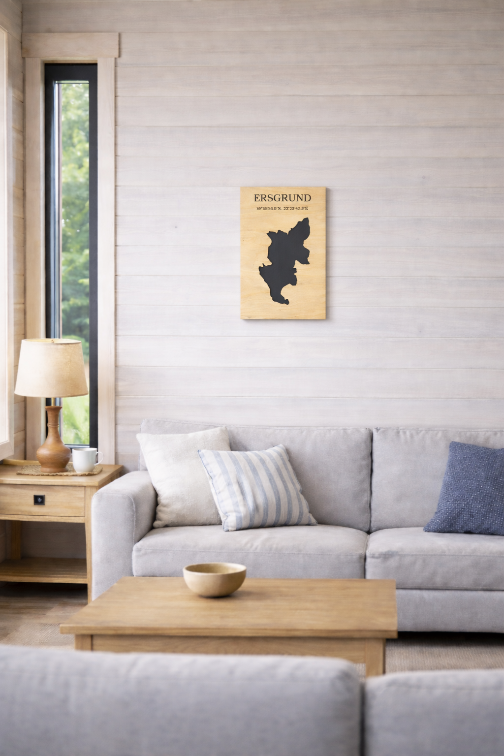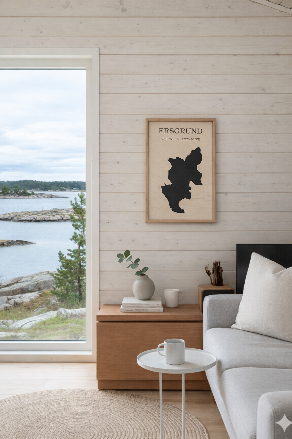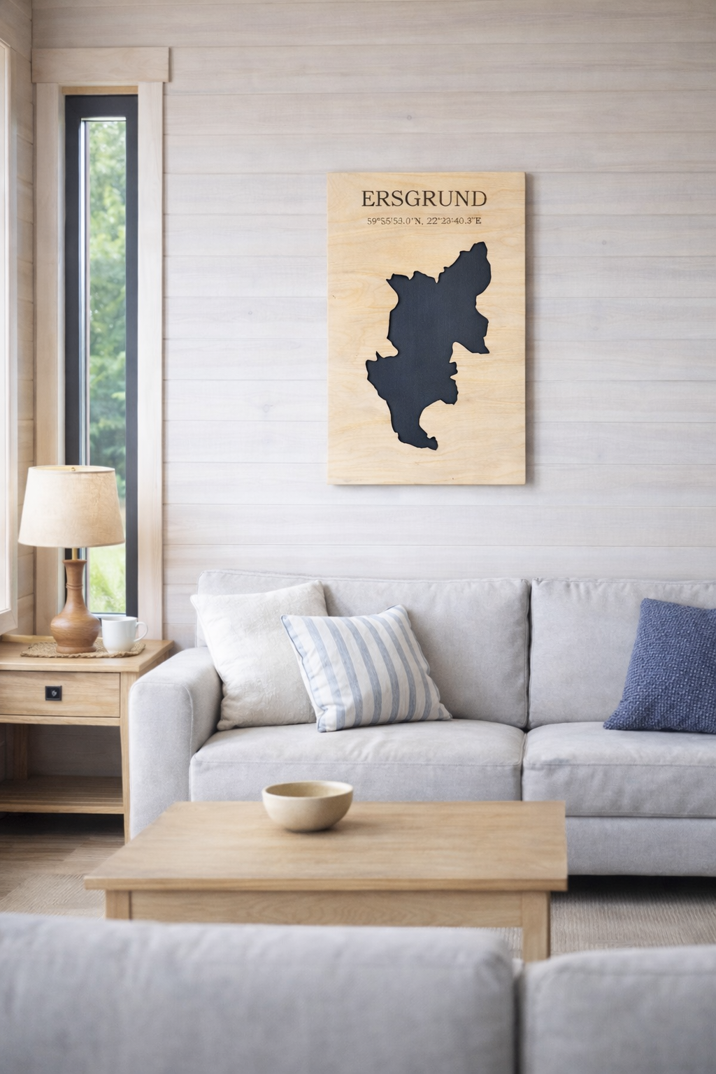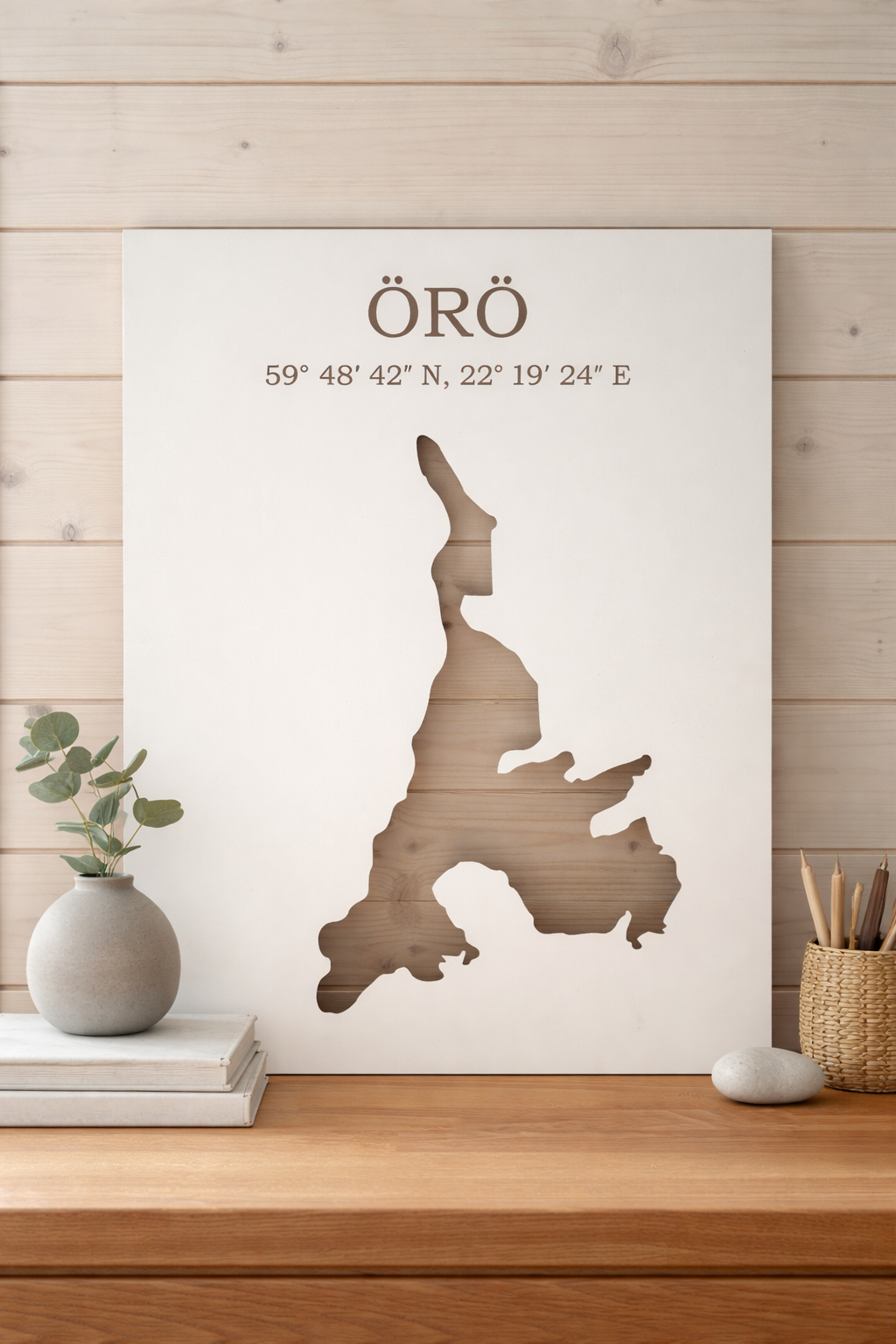 Saari- ja Järvi-tauluista räätälöidään jokaiselle uniikki sisustaulu omasta saaresta tai kotijärvestä.